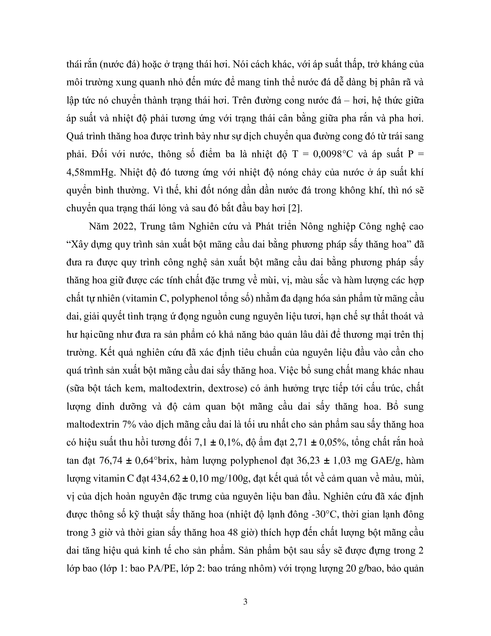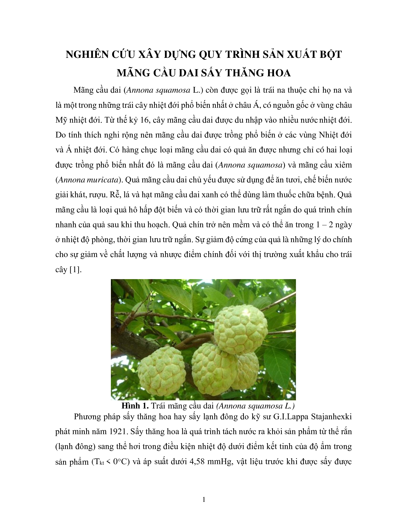 NGHIÊN CỨU XÂY DỰNG QUY TRÌNH SẢN XUẤT BỘT MÃNG CẦU DAI SẤY THĂNG HOA
