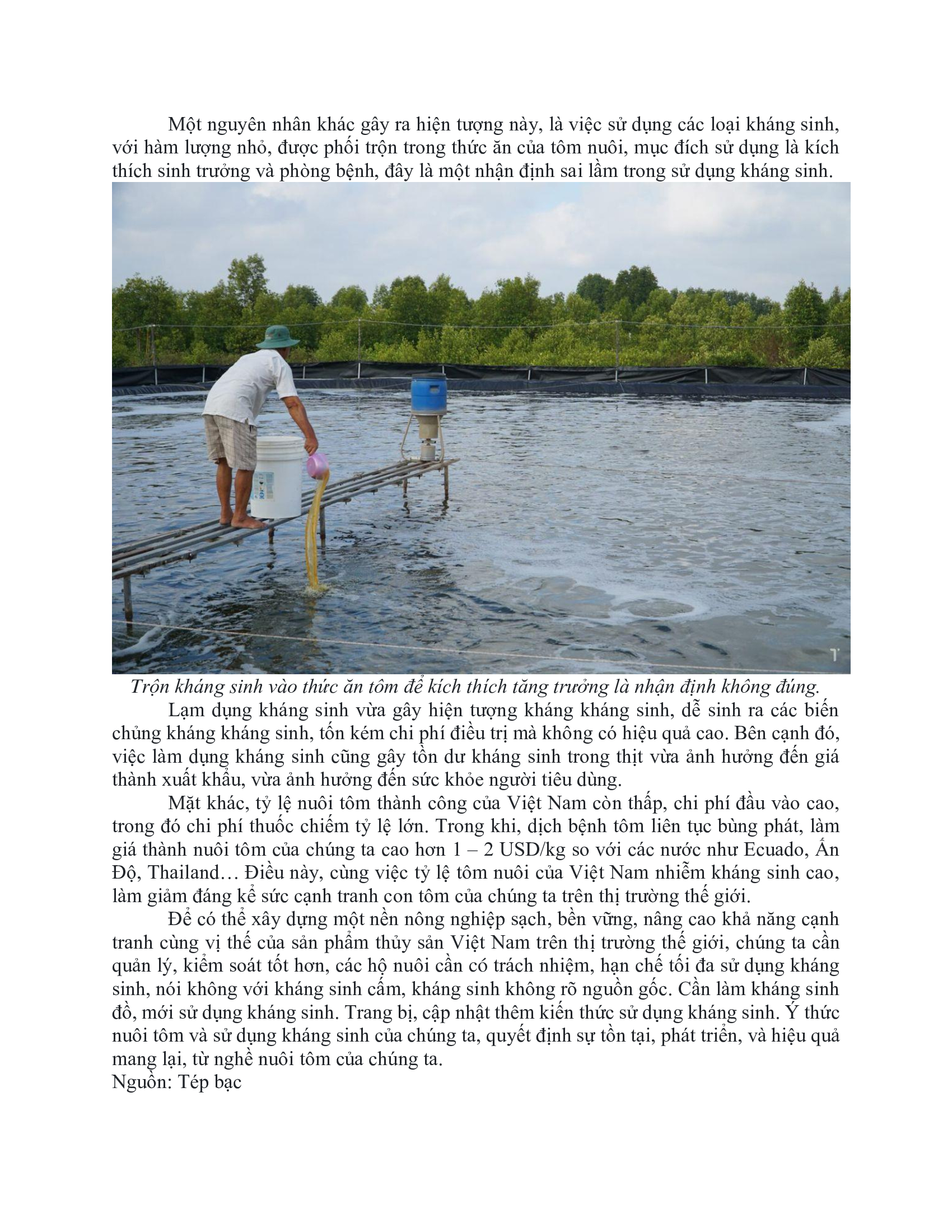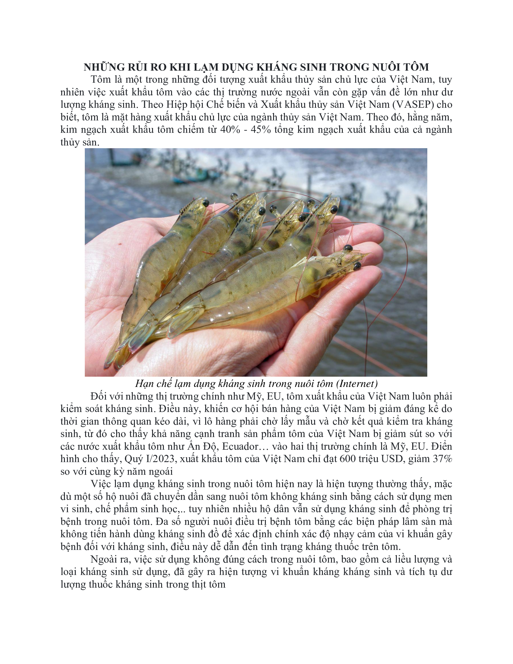 NHỮNG RỦI RO KHI LẠM DỤNG KHÁNG SINH TRONG NUÔI TÔM