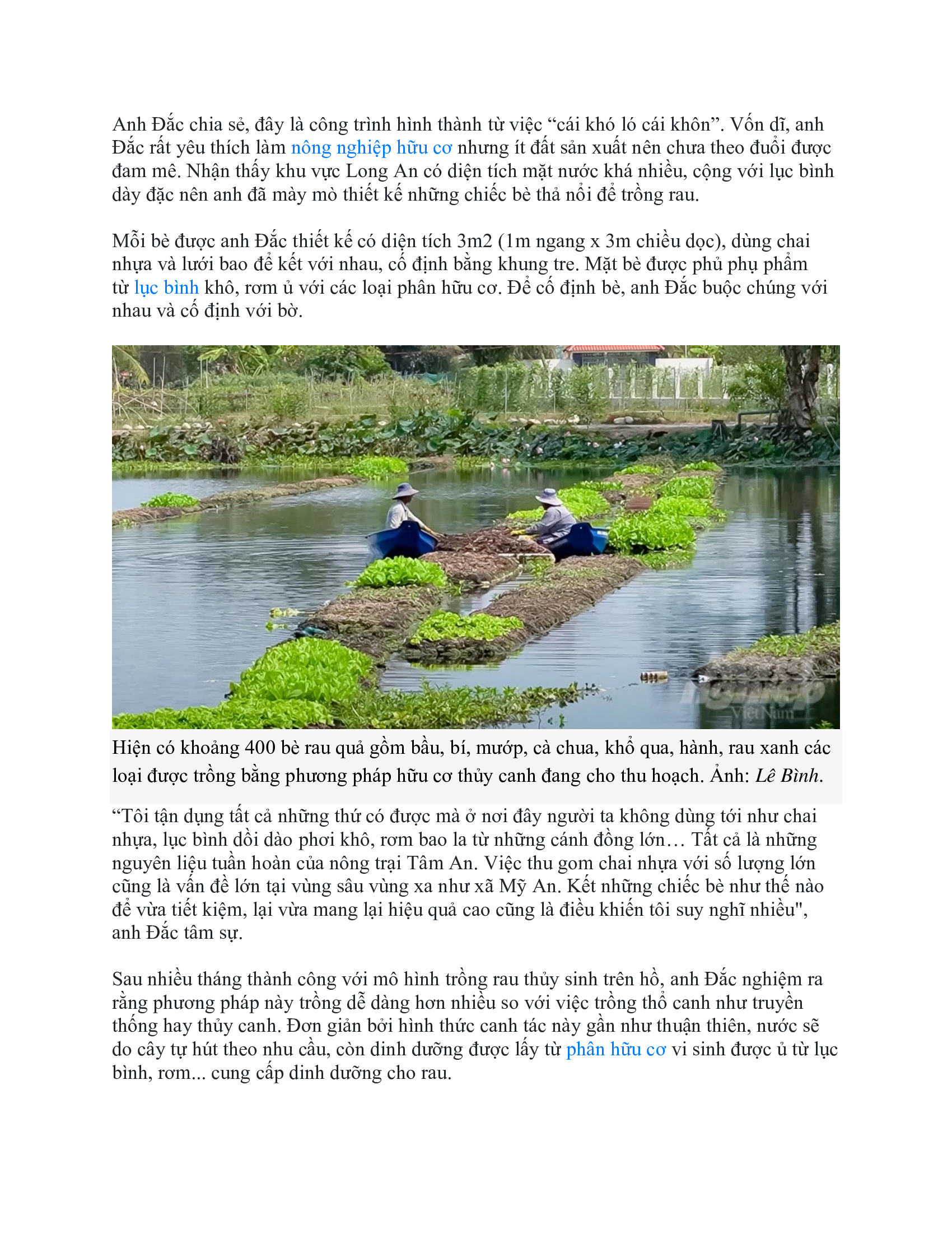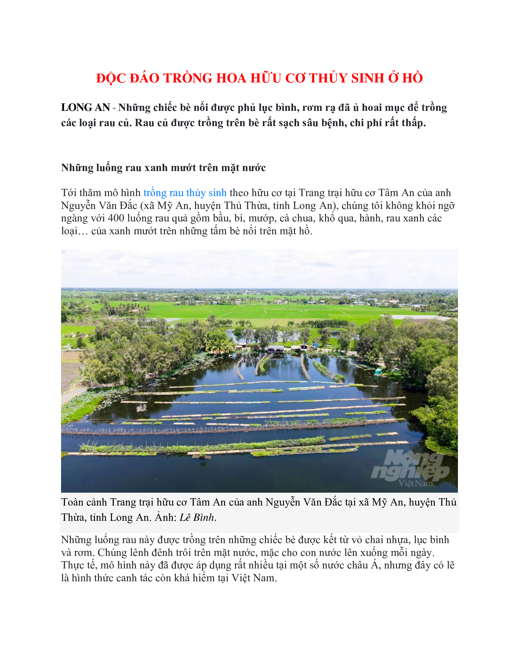 ĐỘC ĐÁO TRỒNG HOA HỮU CƠ THỦY SINH Ở HỒ