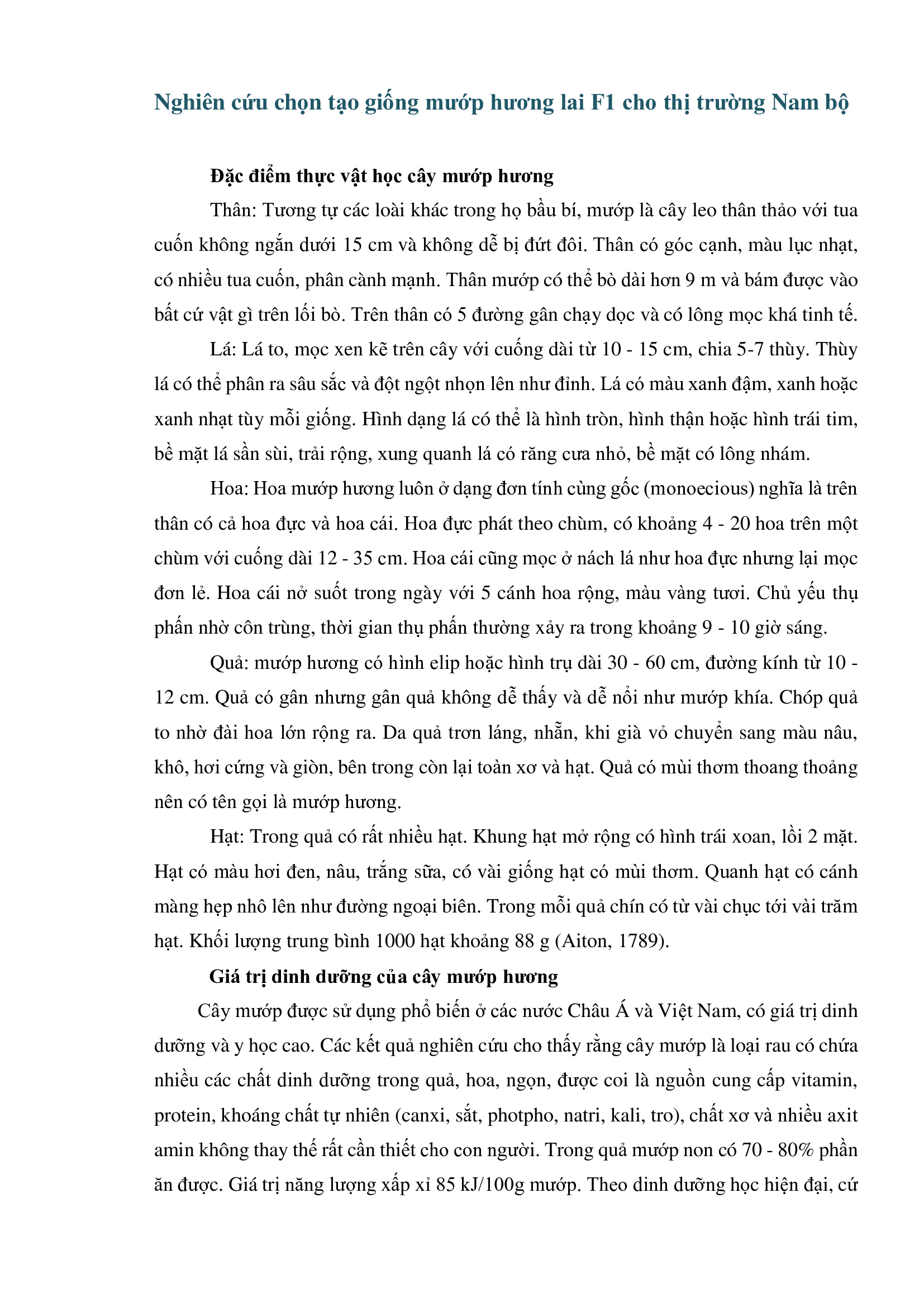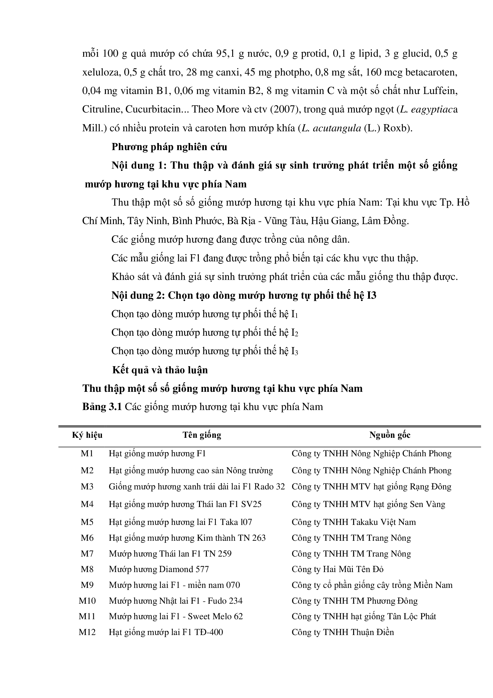 Nghiên cứu chọn tạo giống mướp hương lai F1 cho thị trường Nam bộ
