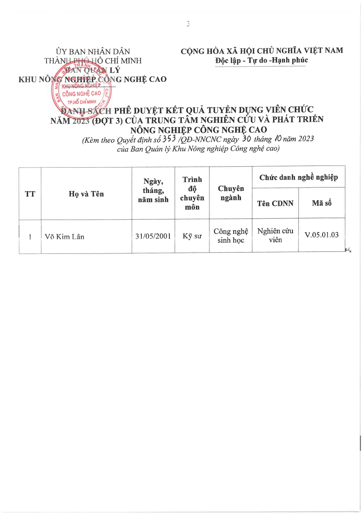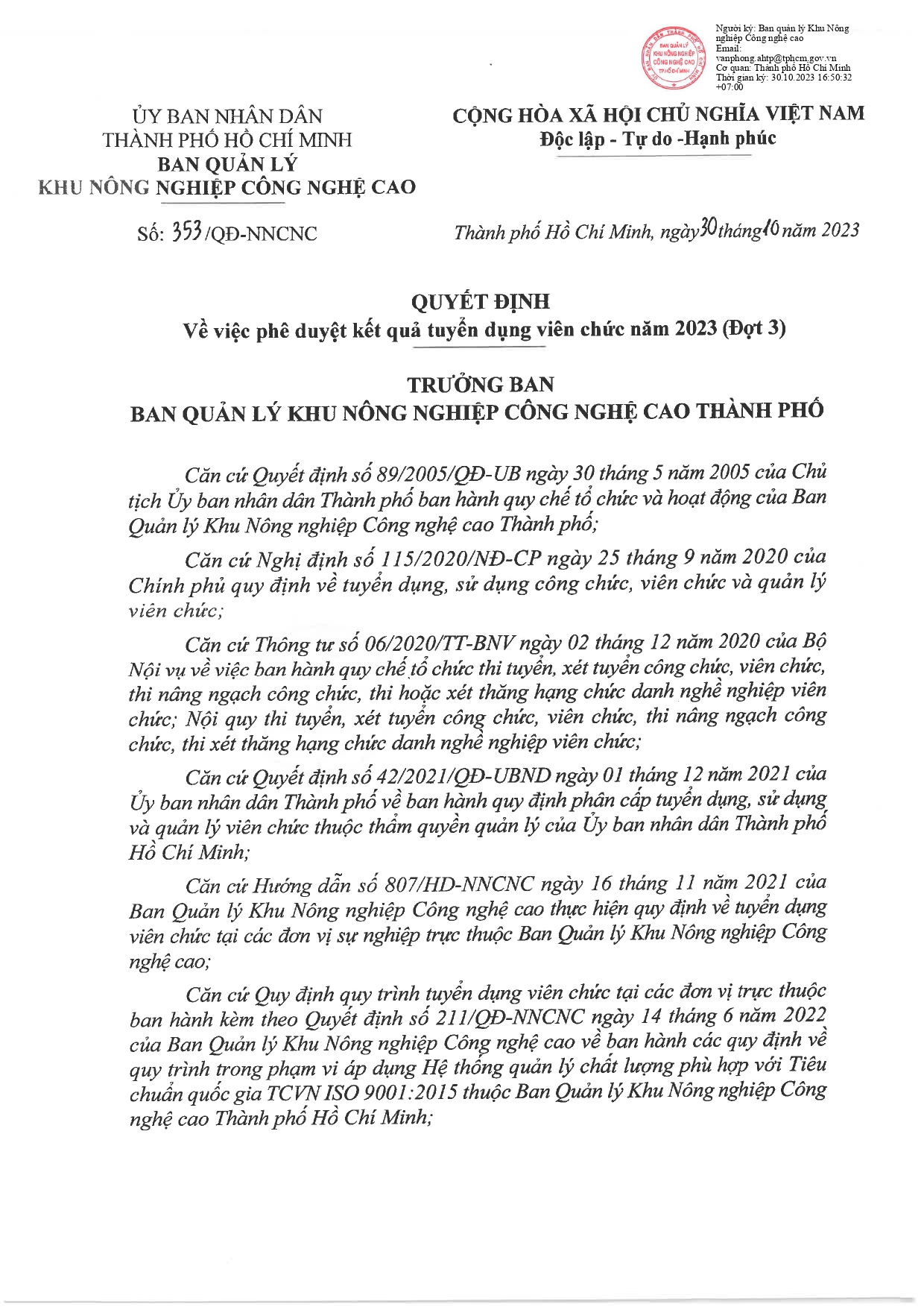 Quyết định về việc phê duyệt tuyển dụng viên chức năm 2023(Đợt 3)