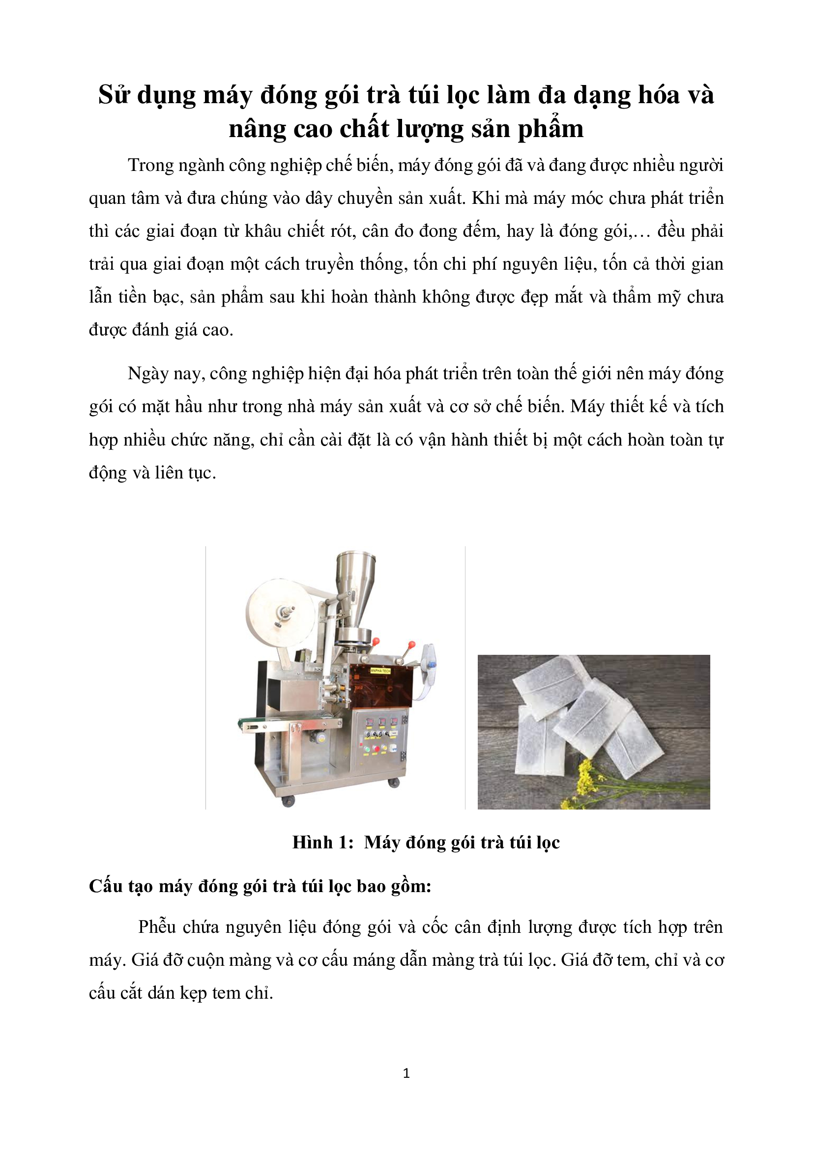 Sử dụng máy đóng gói trà túi lọc làm đa dạng hóa và nâng cao chất lượng sản phẩm