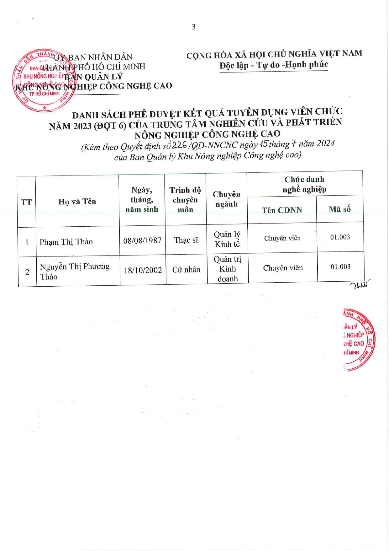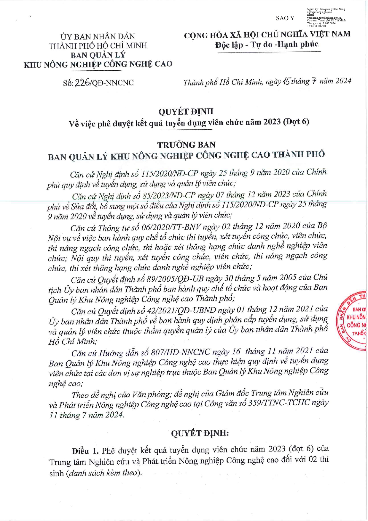 Quyết định phê duyệt tuyển dụng viên chức năm 2023 đợt 6