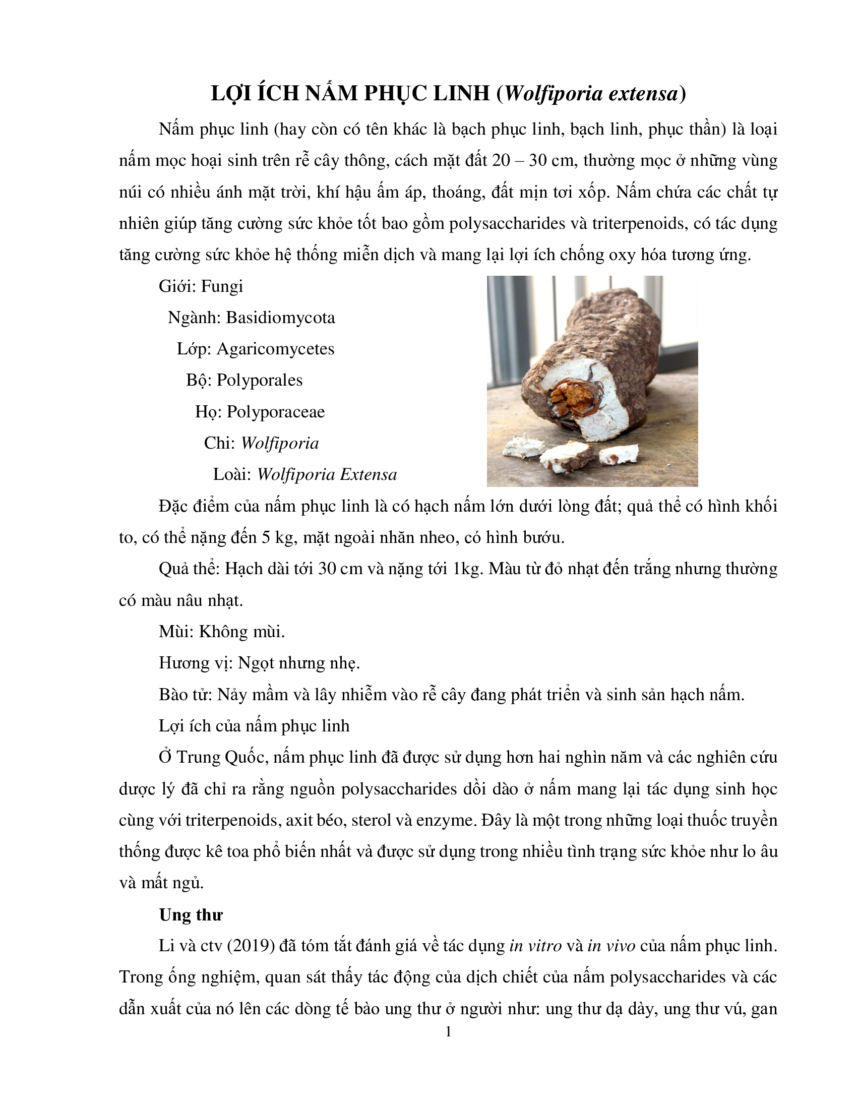 LỢI ÍCH NẤM PHỤC LINH (Wolfiporia extensa)