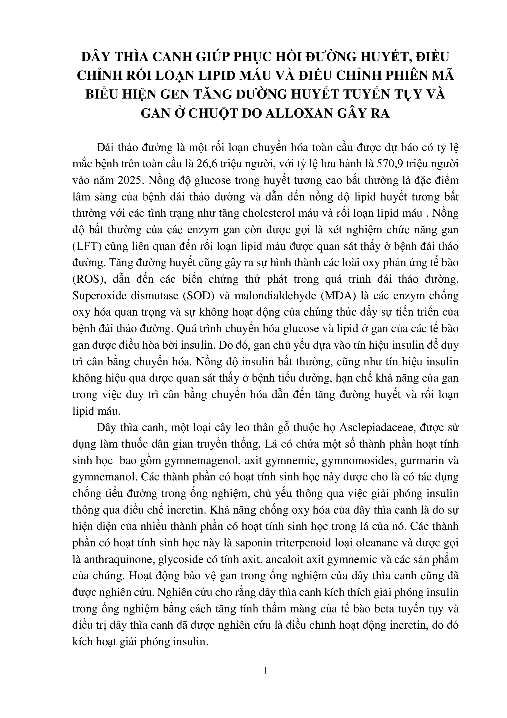 Tin tứcDÂY THÌA CANH GIÚP PHỤC HỒI ĐƯỜNG HUYẾT, ĐIỀU CHỈNH RỐI LOẠN LIPID MÁU VÀ ĐIỀU CHỈNH PHIÊN MÃ BIỂU HIỆN GEN TĂNG ĐƯỜNG HUYẾT TUYẾN TỤY VÀ GAN Ở CHUỘT DO ALLOXAN GÂY RA