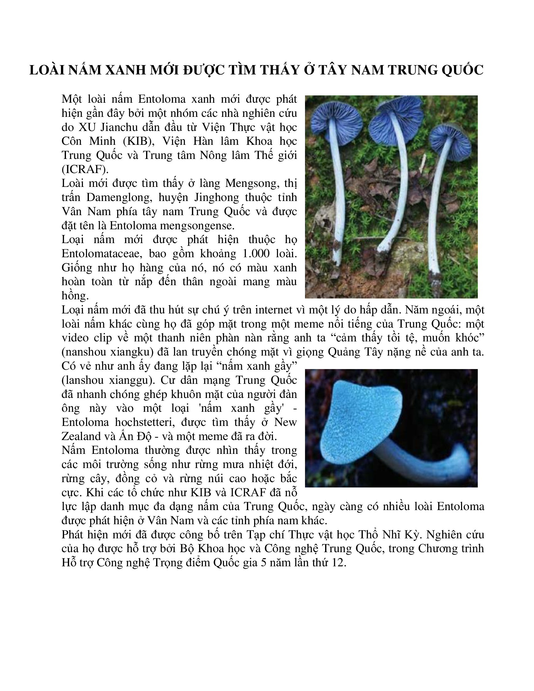 Loài nấm xanh mới được tìm thấy ở Tây Nam Trung Quốc