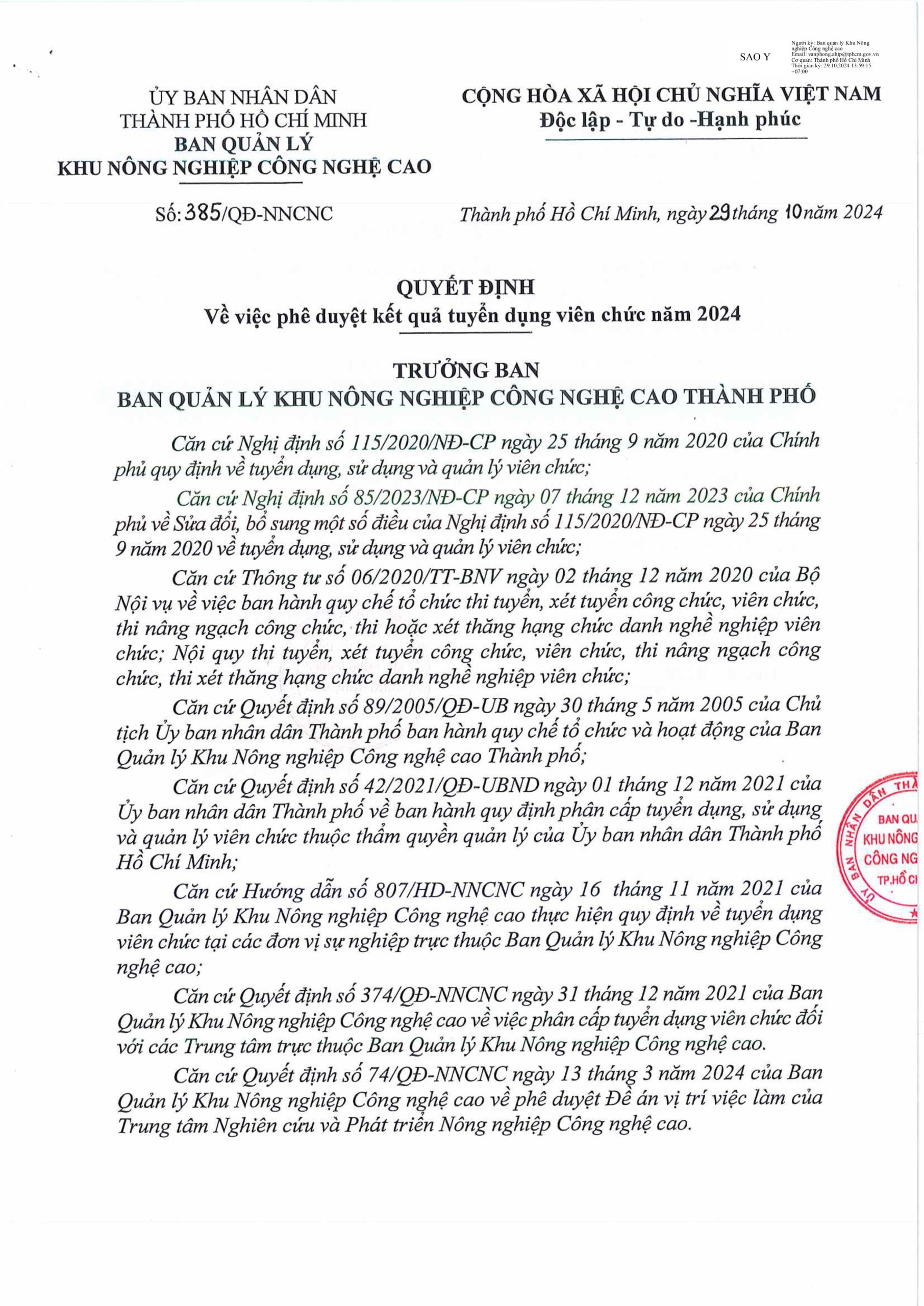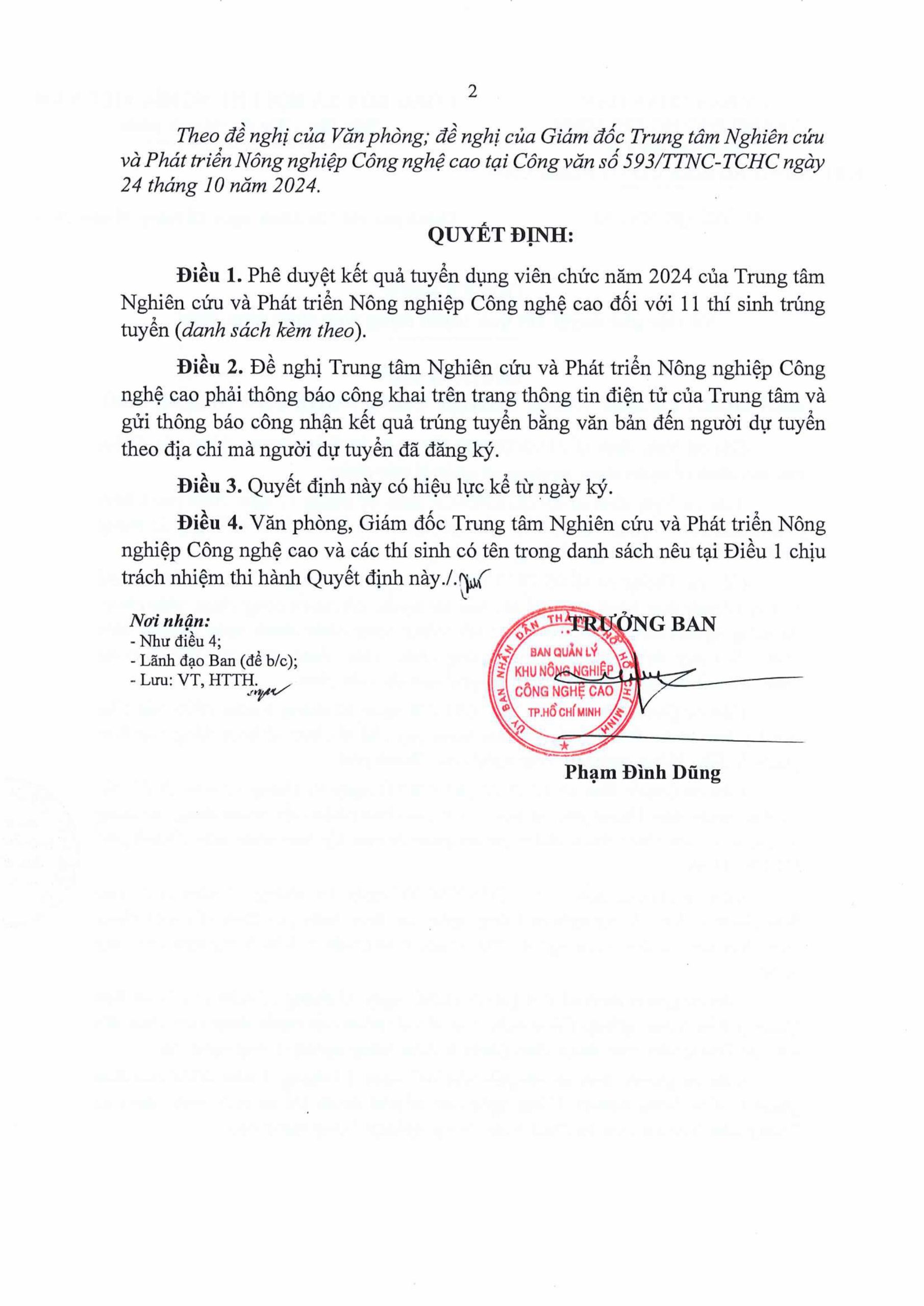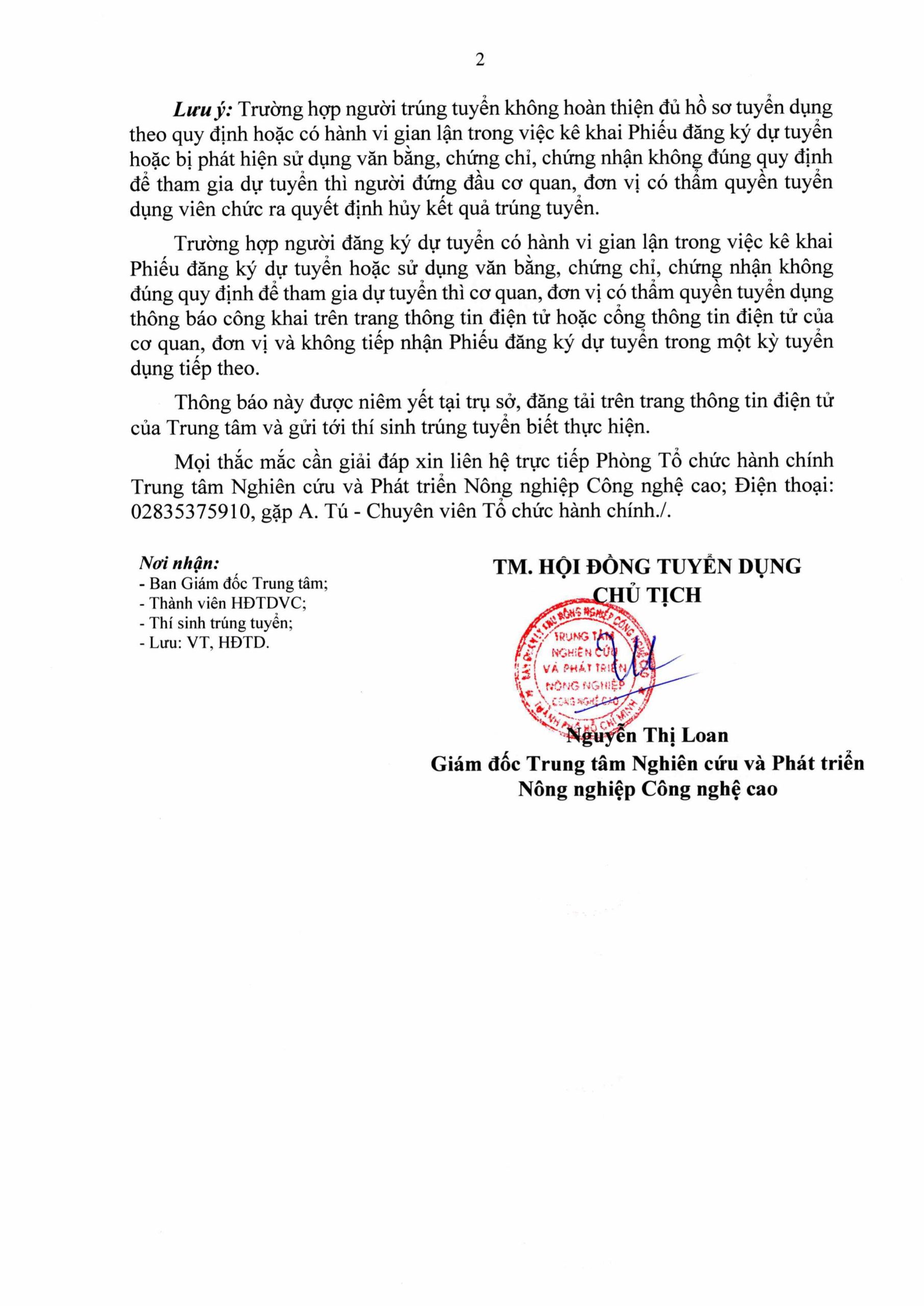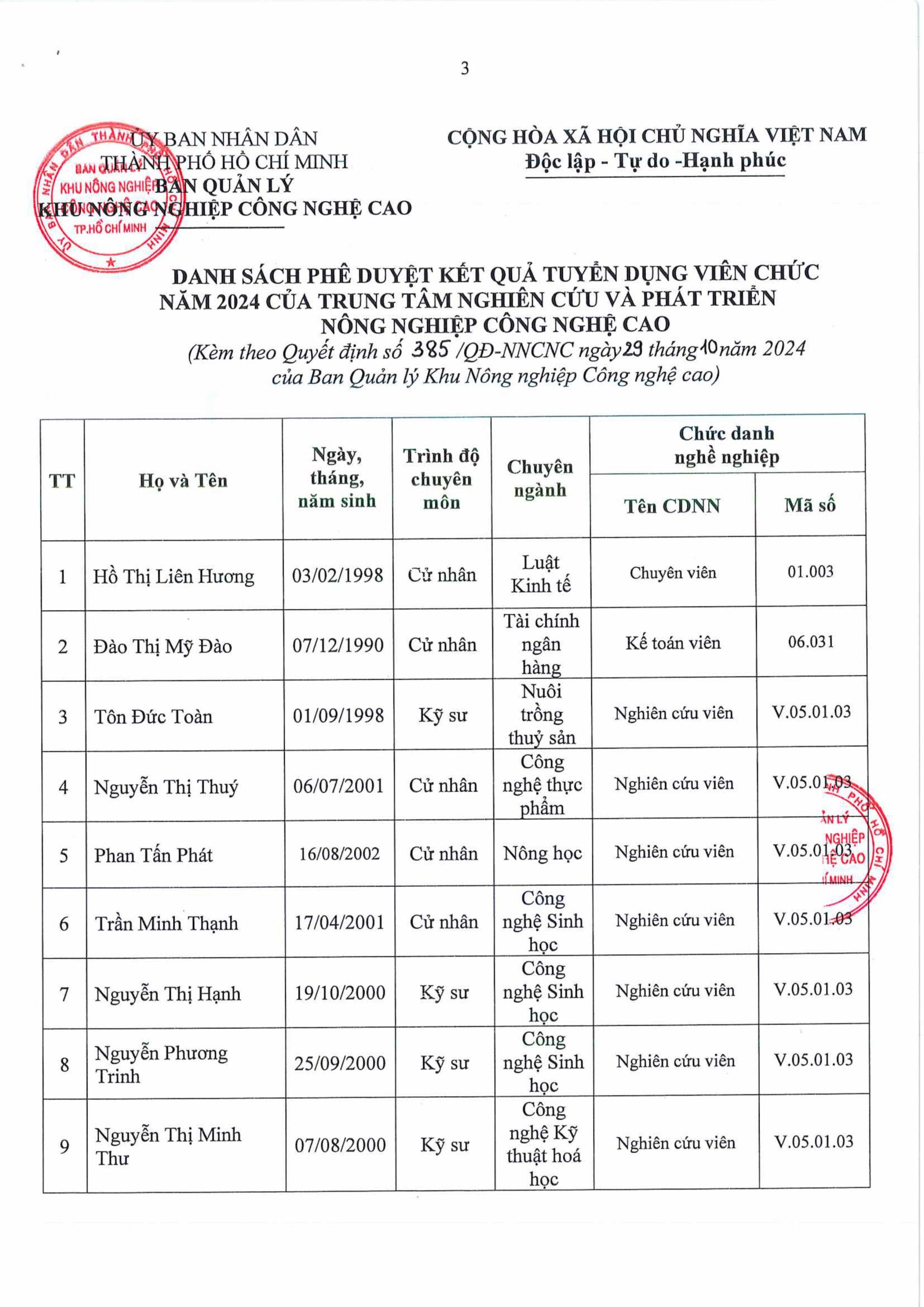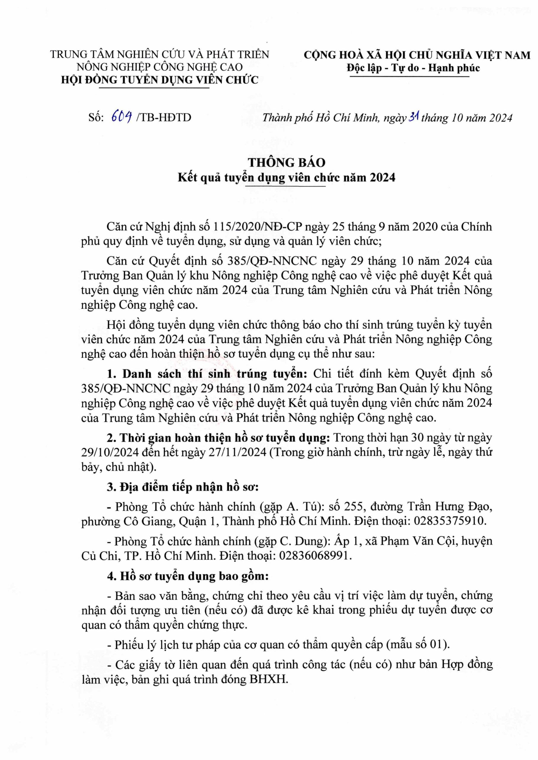 Thông báo về kết quả phê duyệt tuyển dụng viên chức năm 2024
