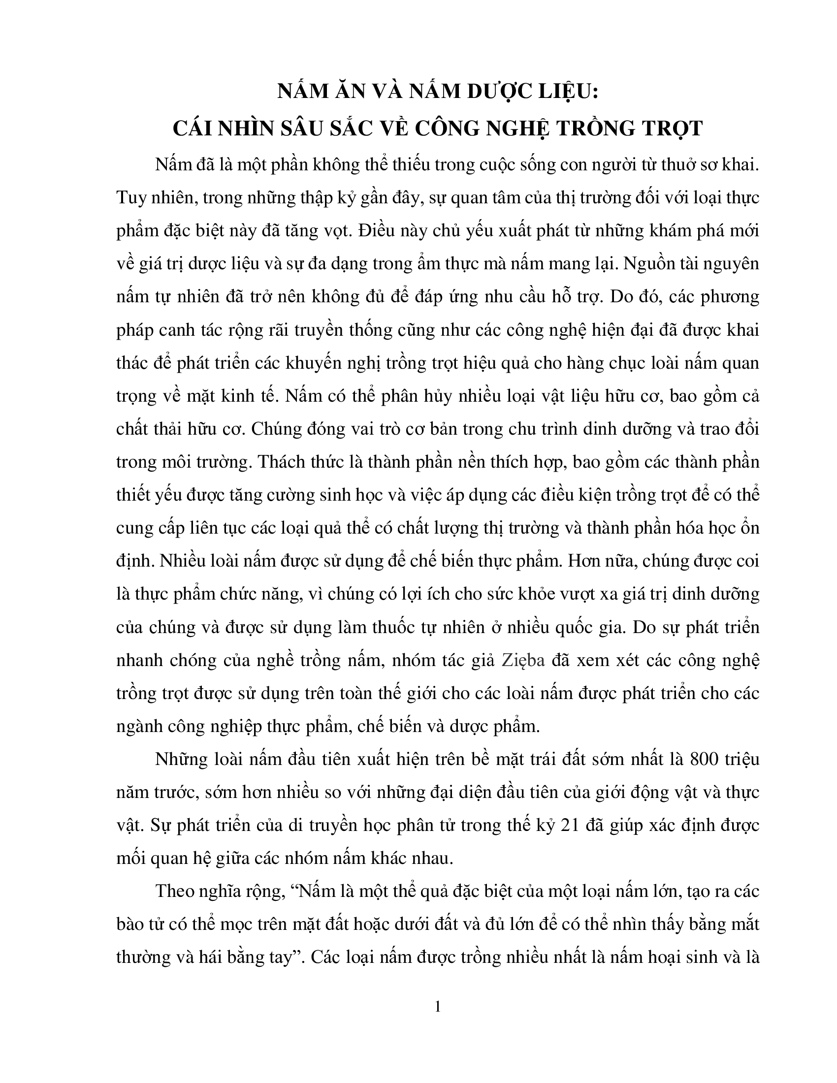 NẤM ĂN VÀ NẤM DƯỢC LIỆU: CÁI NHÌN SÂU SẮC VỀ CÔNG NGHỆ TRỒNG TRỌT