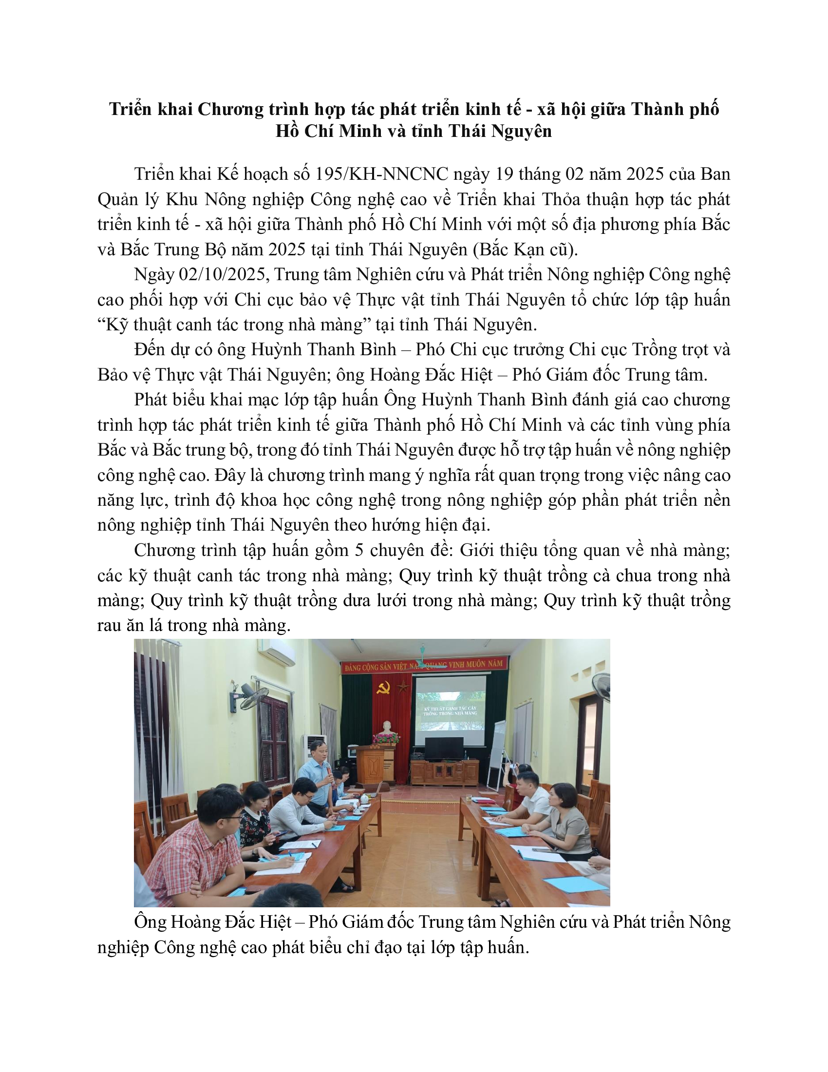 Hợp tác, Tin tứcTriển khai Chương trình hợp tác phát triển kinh tế – xã hội giữa Thành phố Hồ Chí Minh và tỉnh Thái Nguyên