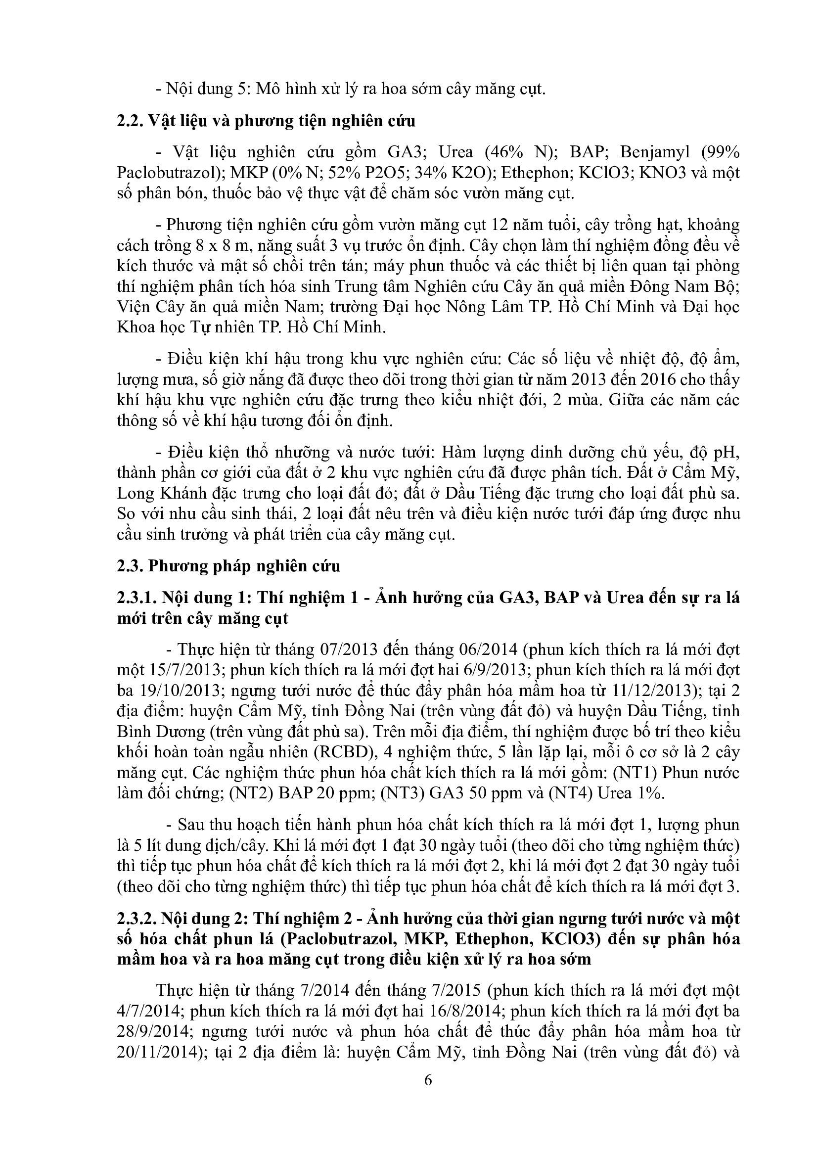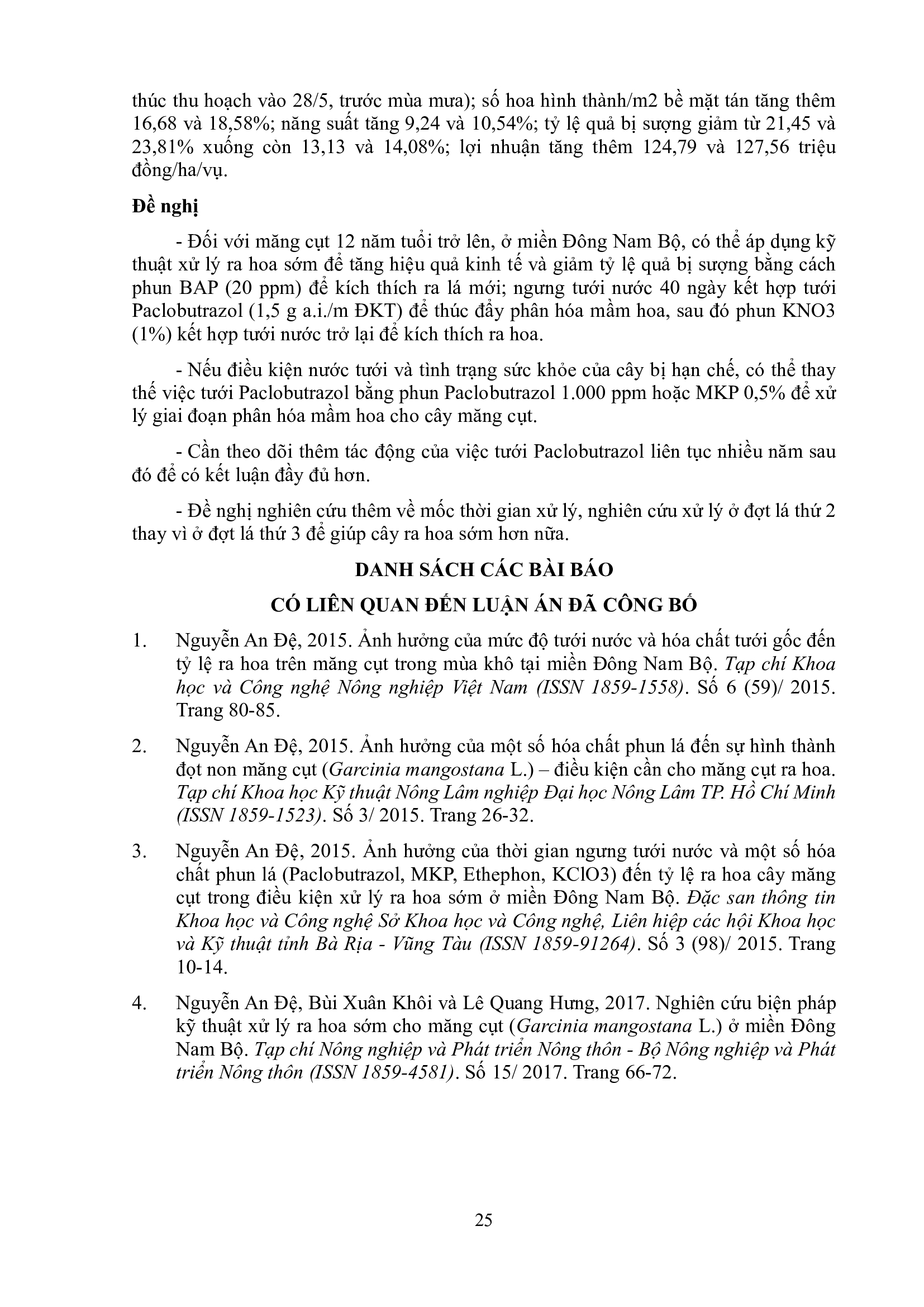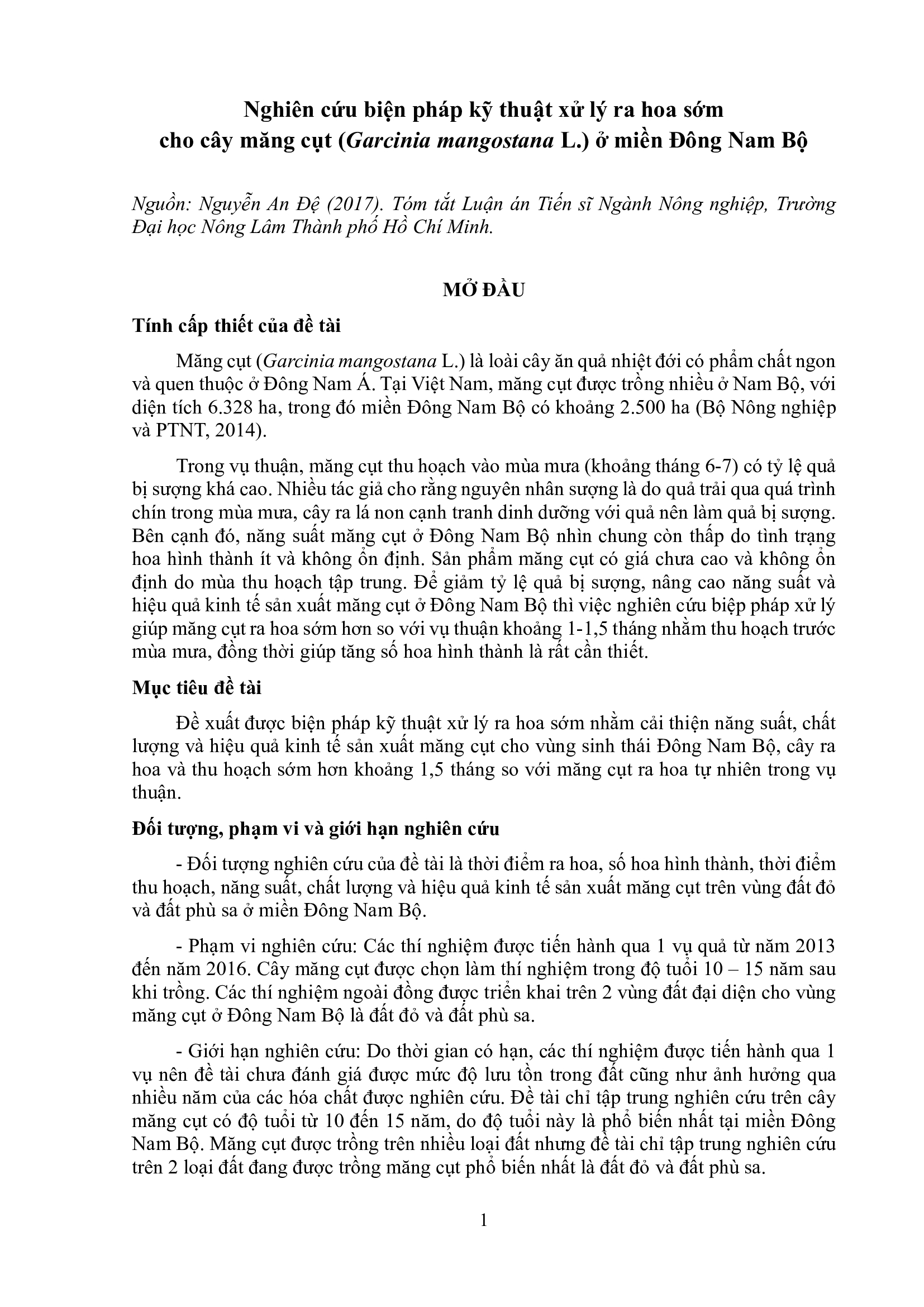 Tin tứcNghiên cứu biện pháp kỹ thuật xử lý ra hoa sớm cho cây măng cụt (Garcinia mangostana L.) ở miền Đông Nam Bộ