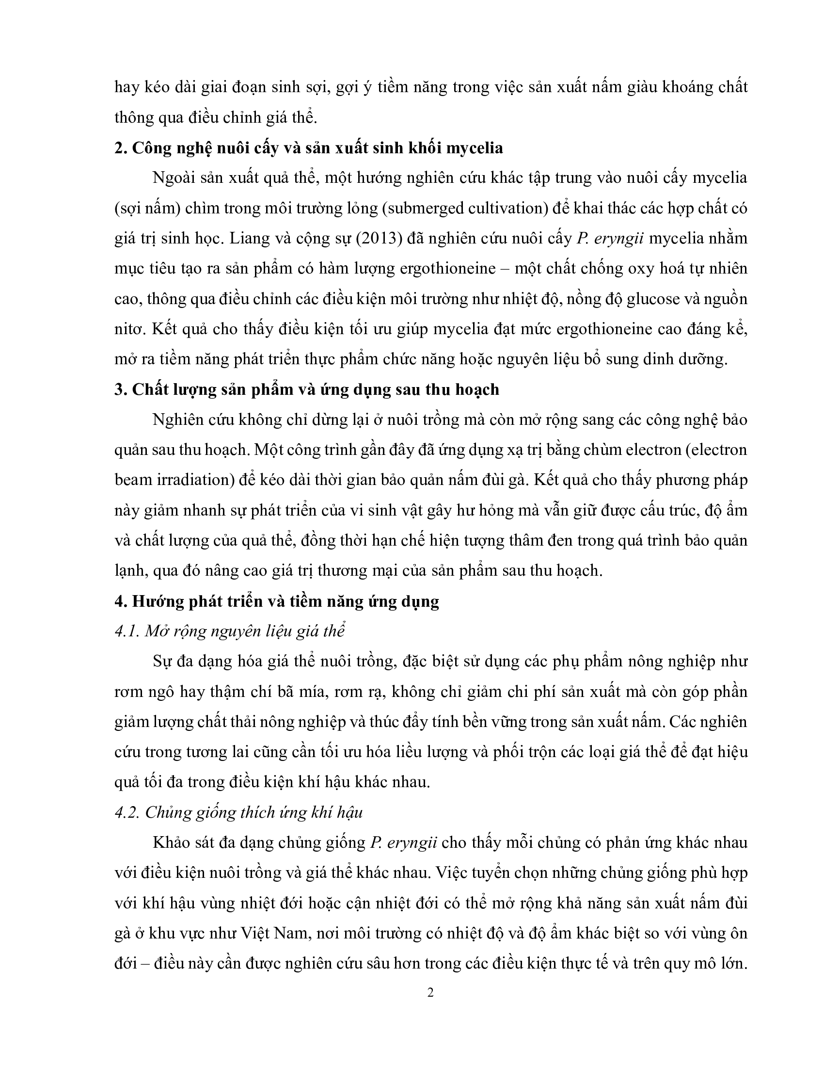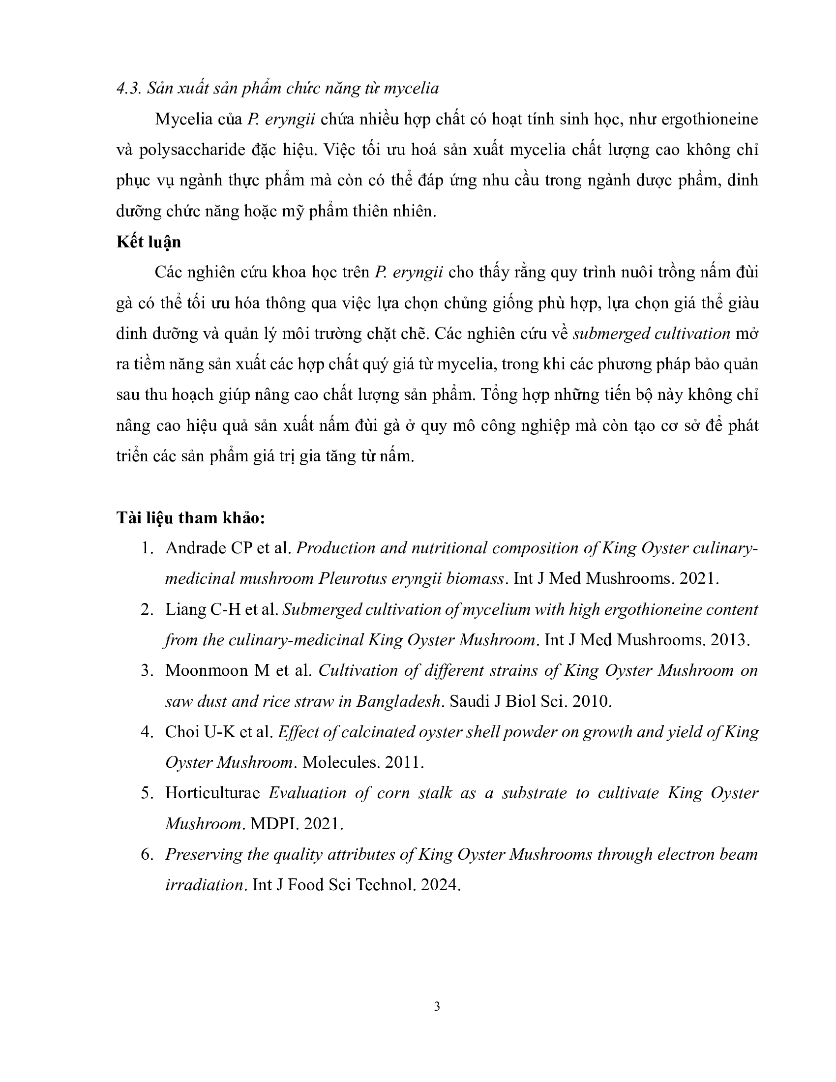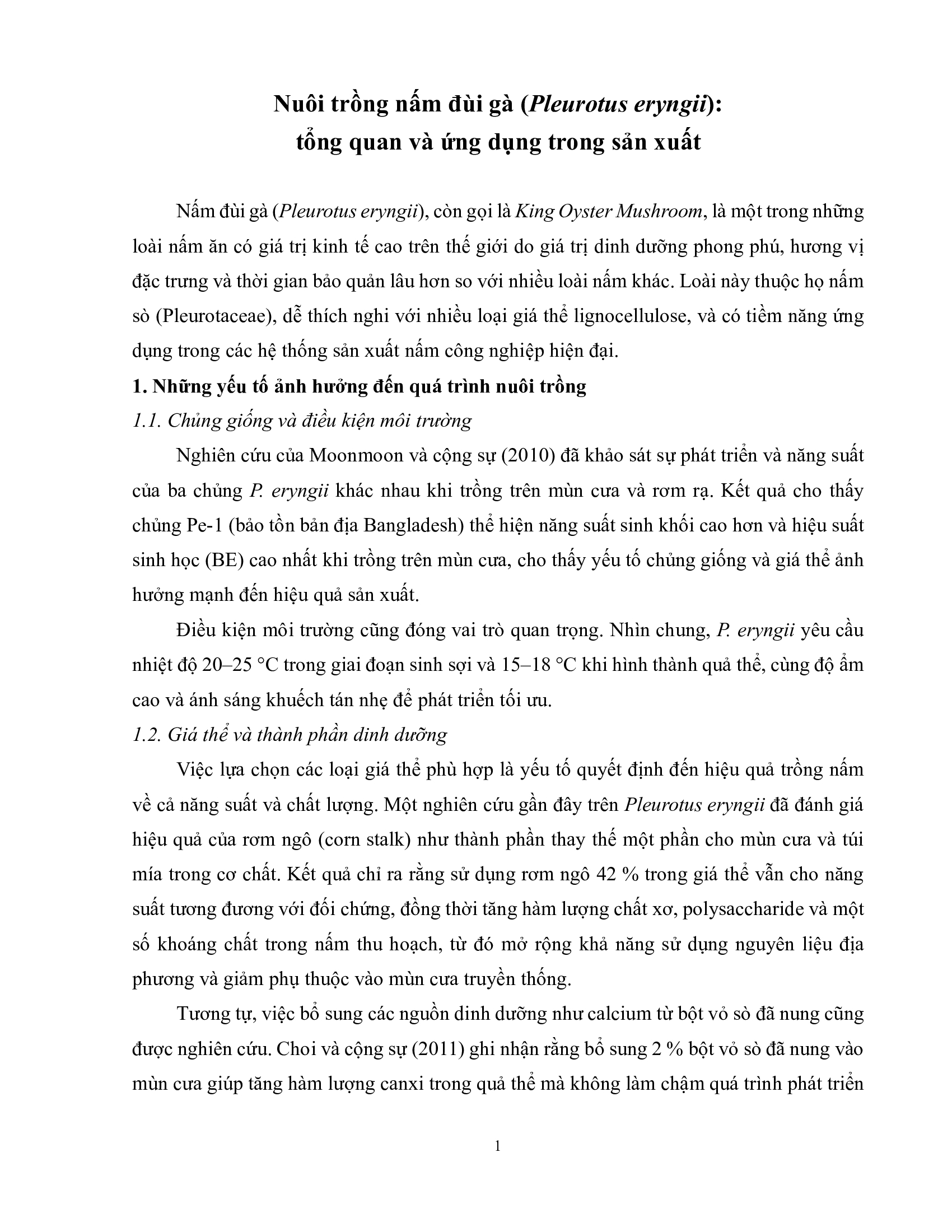 Nuôi trồng nấm đùi gà (Pleurotus eryngii): tổng quan và ứng dụng trong sản xuất