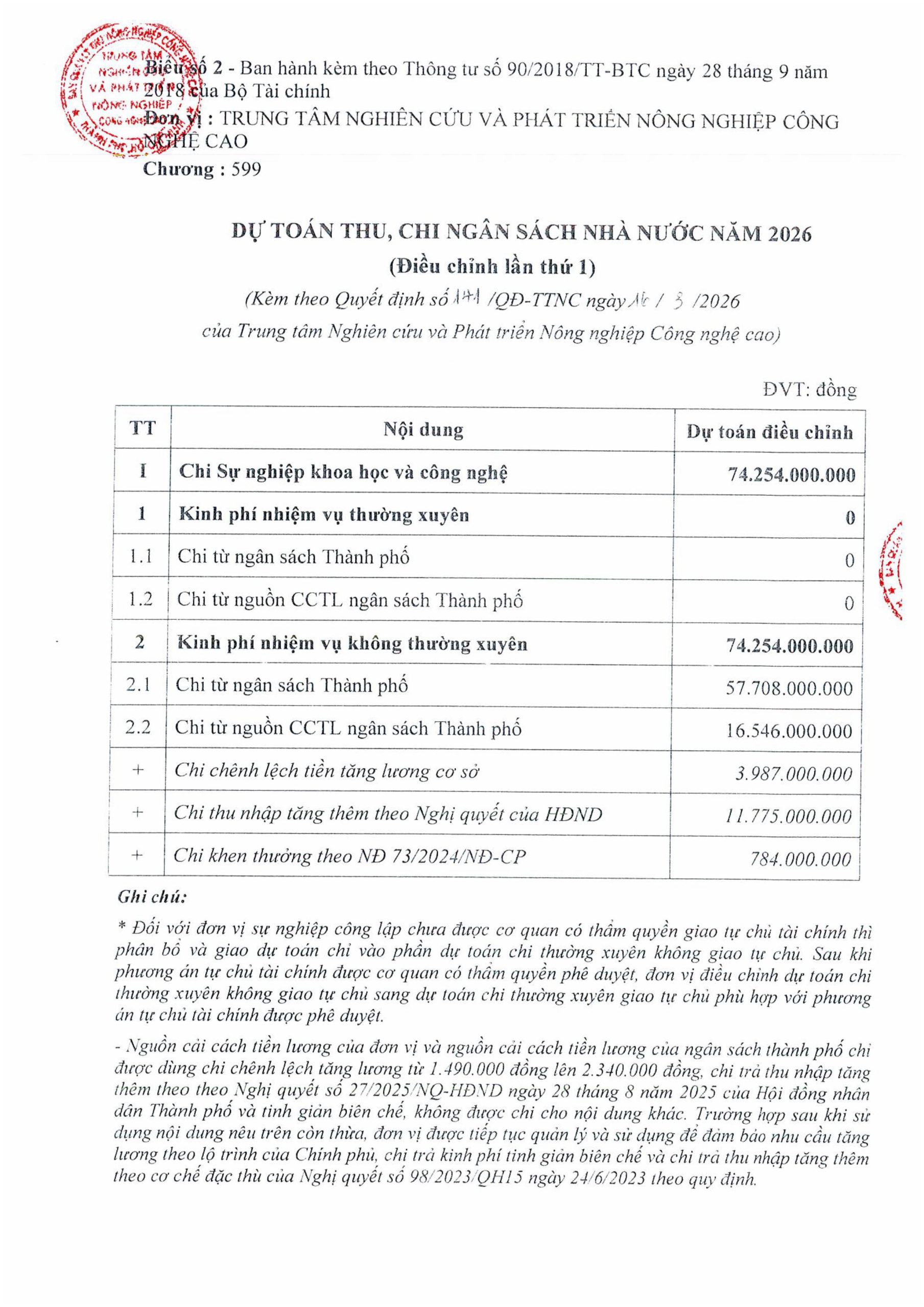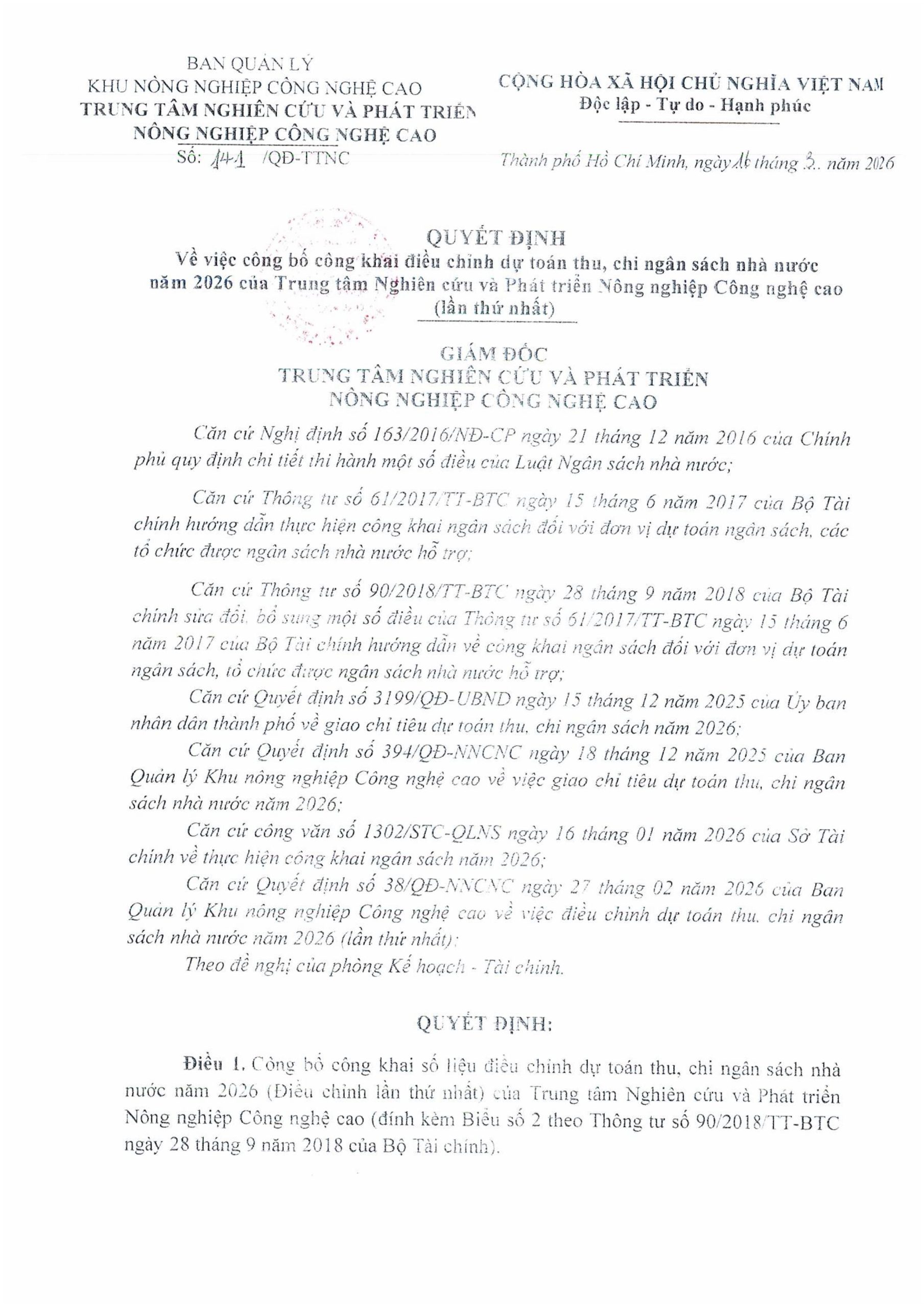Tin tứcQuyết định về việc công khai dự toán toán thu, chi ngân sách nha nước năm 2026 của Trung tâm Nghiên cứu và Phát triển Nông nghiệp Công nghệ cao (lần thứ nhất)